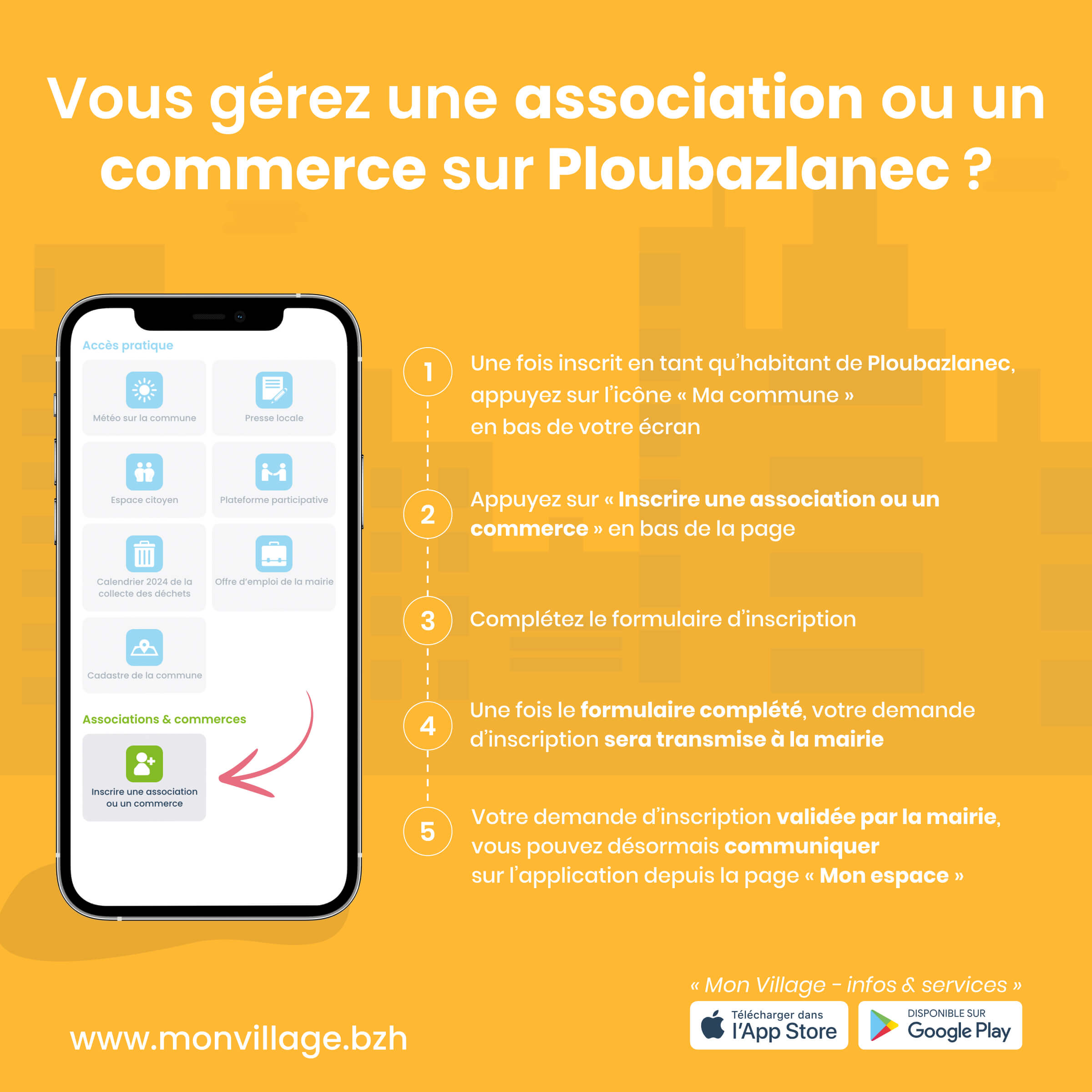 Conçue comme un service d’utilité publique, l’application Mon Village permet la circulation d’une information claire, rapide et efficace sur Ploubazlanec.