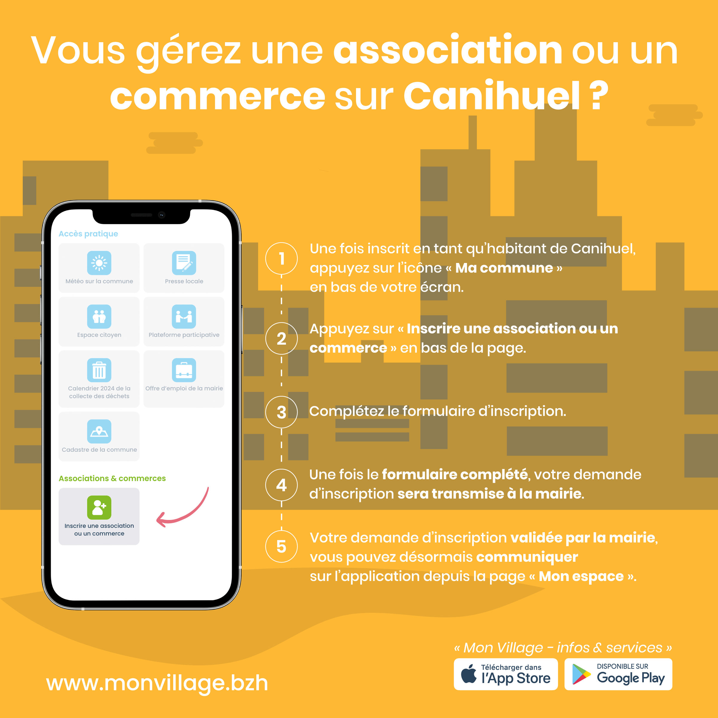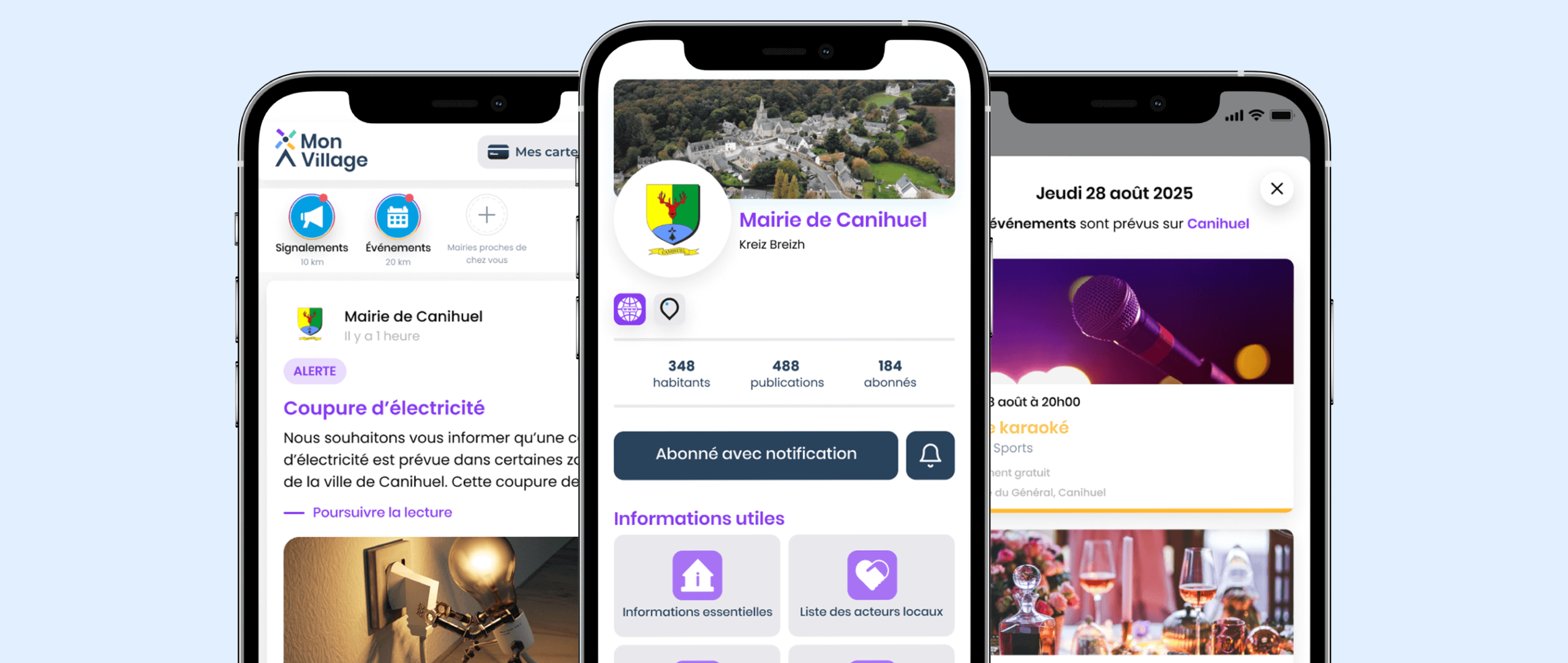 Conçue comme un service d’utilité publique, l’application Mon Village permet la circulation d’une information claire, rapide et efficace sur Canihuel.