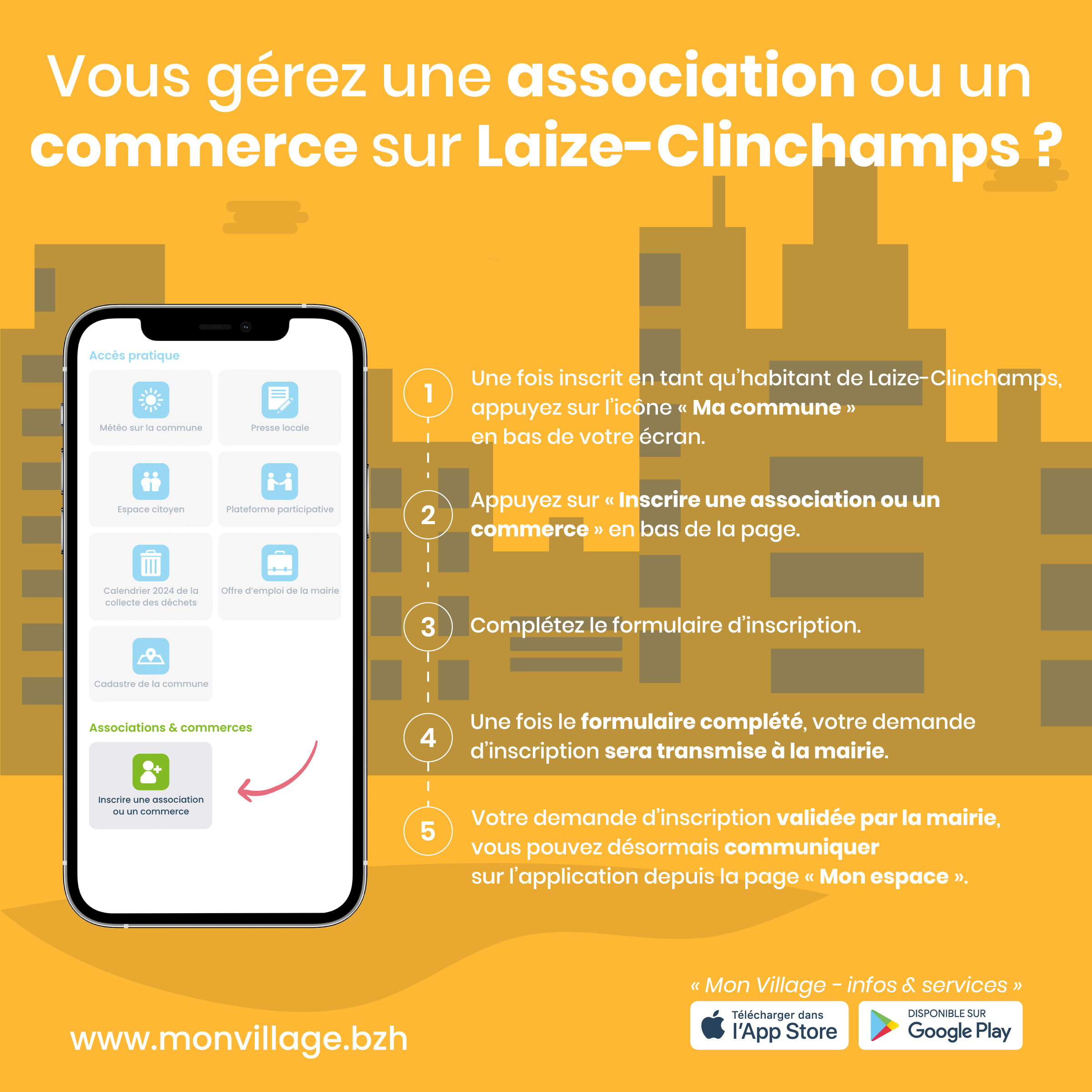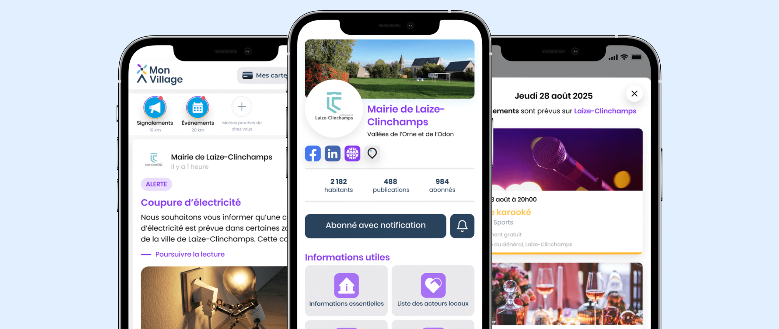 Conçue comme un service d’utilité publique, l’application Mon Village permet la circulation d’une information claire, rapide et efficace sur Laize-Clinchamps.
