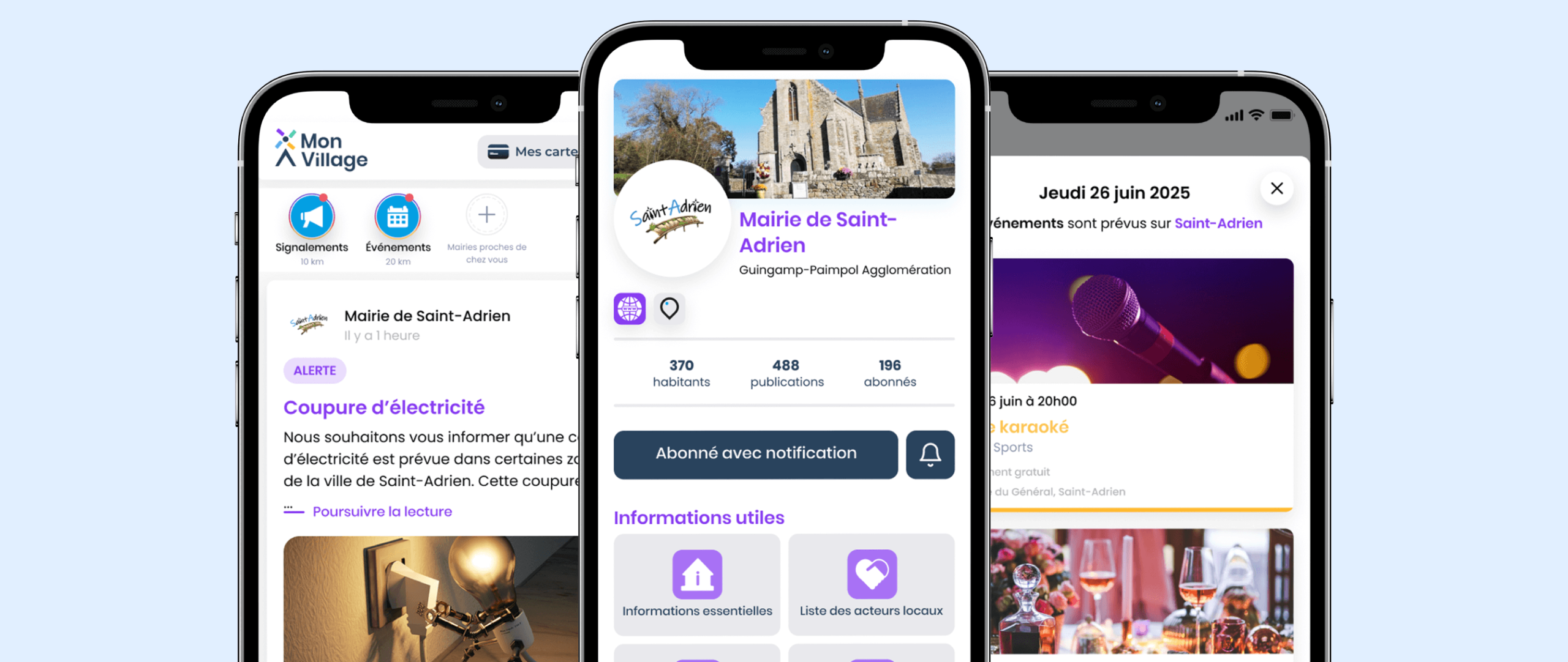 Conçue comme un service d’utilité publique, l’application Mon Village permet la circulation d’une information claire, rapide et efficace sur Saint-Adrien.