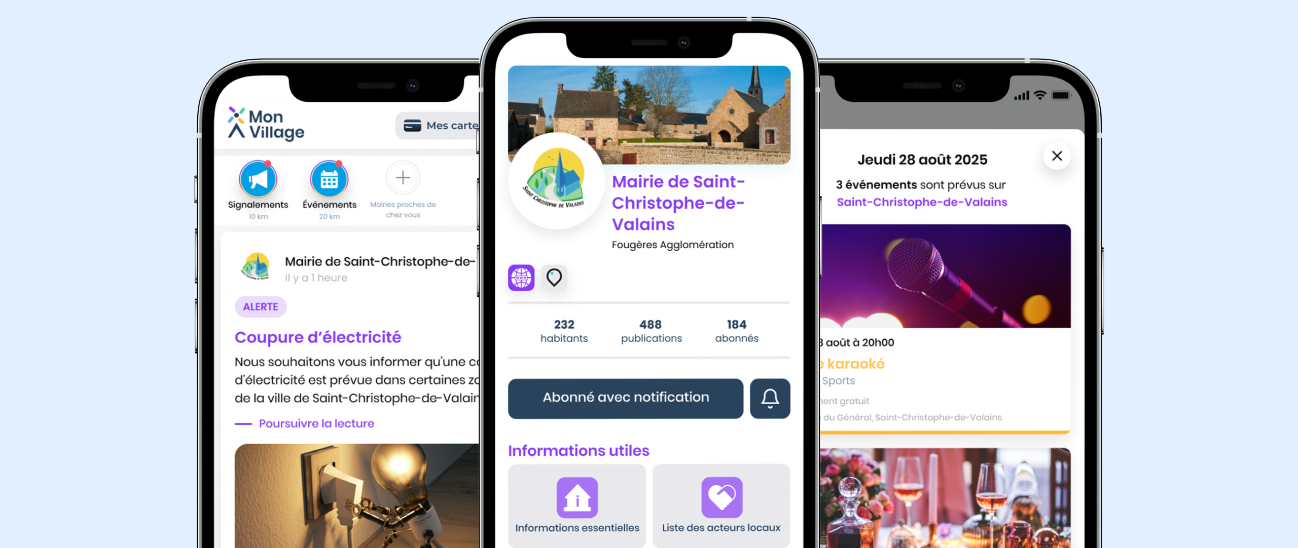 Conçue comme un service d’utilité publique, l’application Mon Village permet la circulation d’une information claire, rapide et efficace sur Saint-Christophe-de-Valains.
