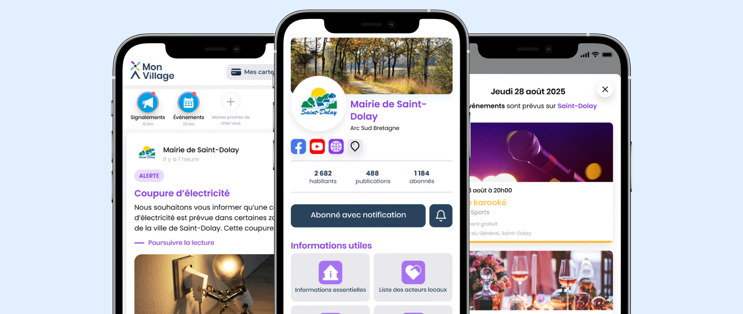 Conçue comme un service d’utilité publique, l’application Mon Village permet la circulation d’une information claire, rapide et efficace sur Saint-Dolay.