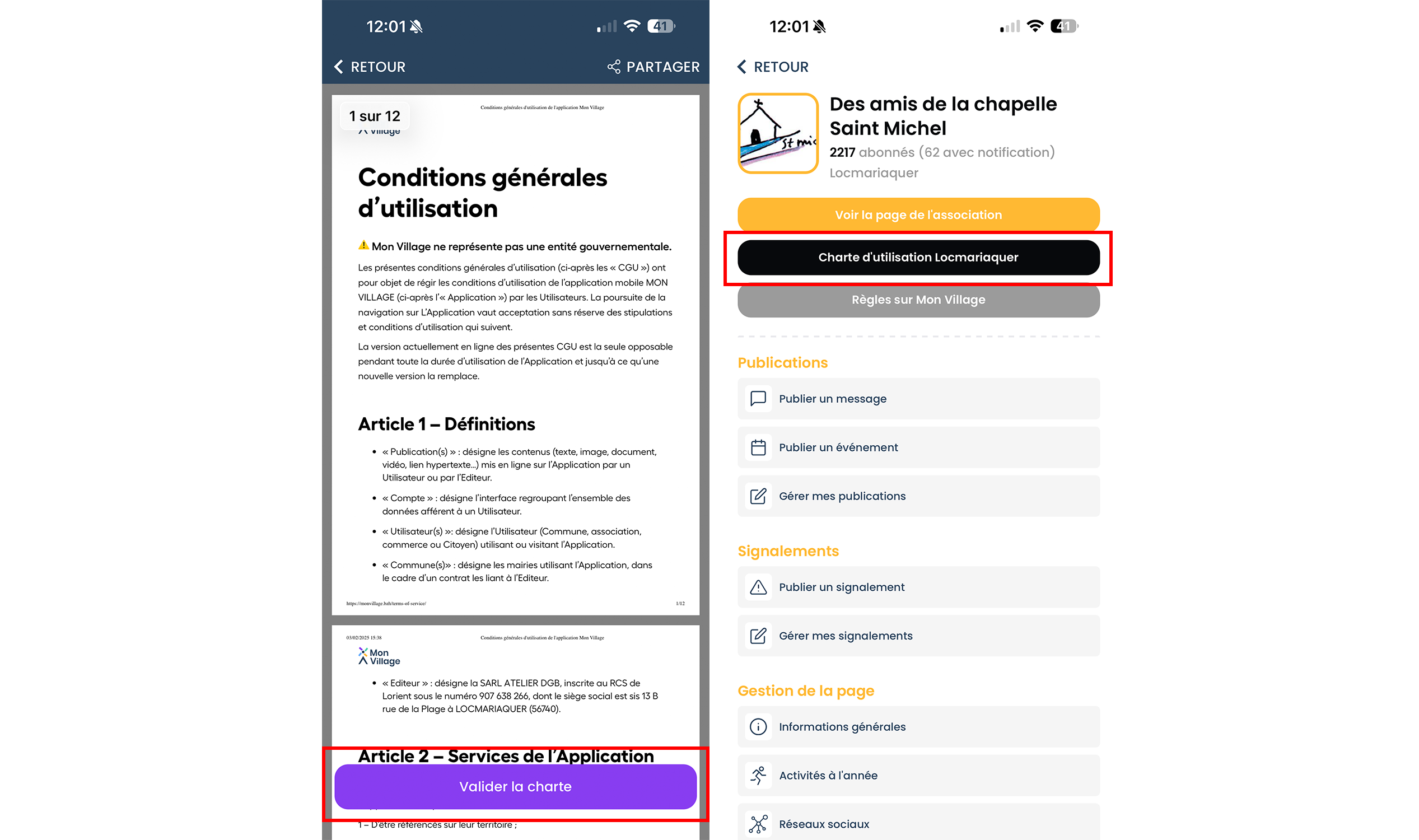 Vous avez désormais la possibilité de mettre en place, de manière facultative, une charte d’utilisation personnalisée en complément des CGU de Mon Village.