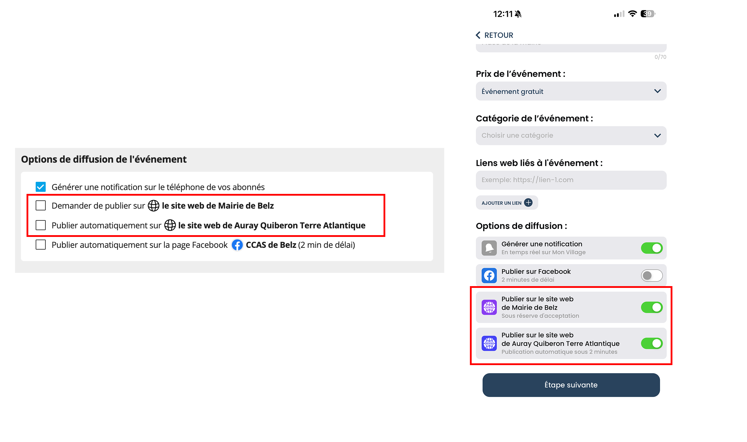 Des cases à cocher ont donc été ajoutées sur les espaces administrateurs web et mobile des associations, commerces et services.