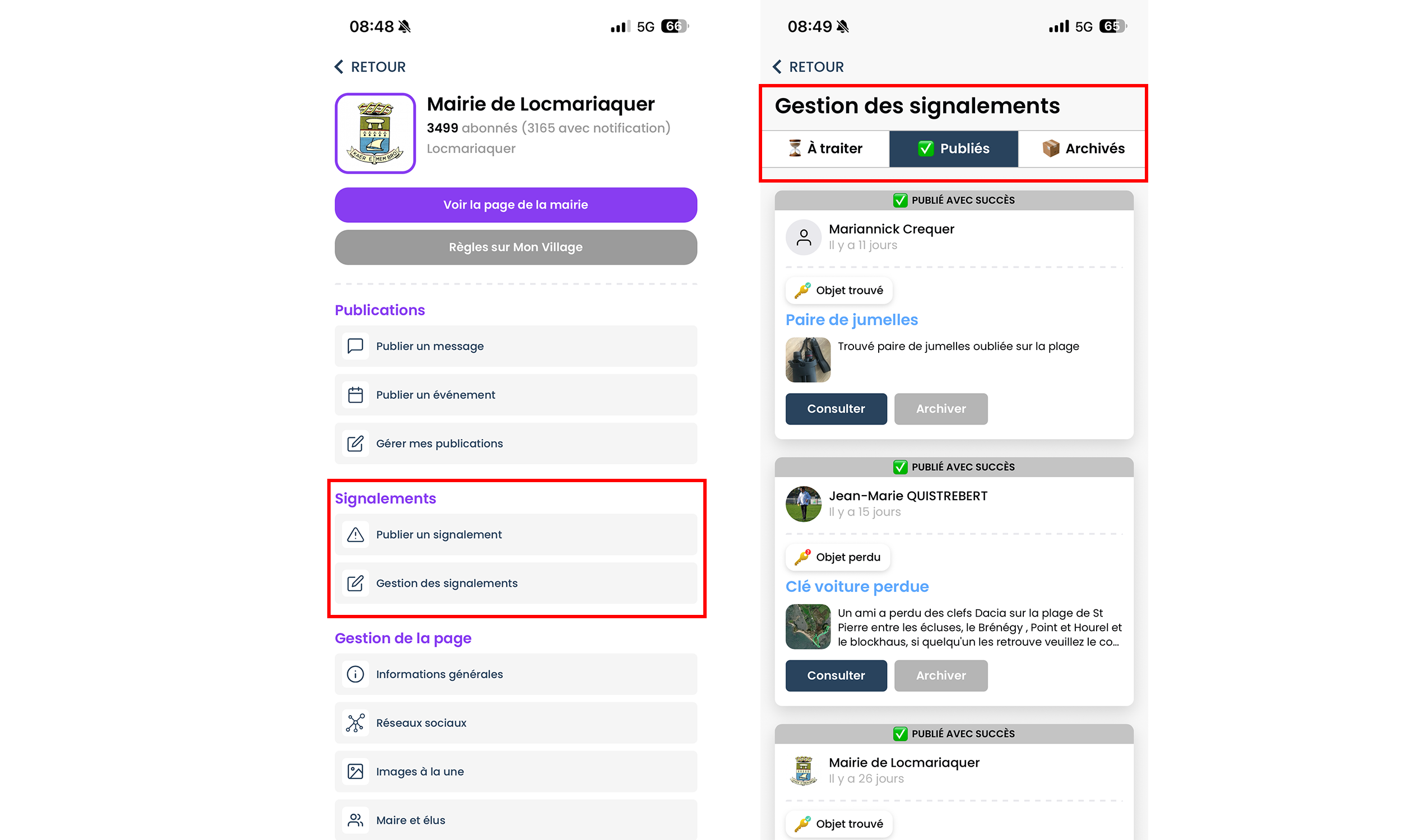Comme les signalements effectués par les administrés, ces signalements sont soumis à la mairie pour modération.